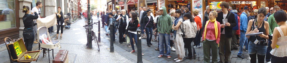 SIX ACTS at Scenofest, PQ 2011 saw the culmination of a six month online research project with students and emerging practitioners from around the world. ACT 6 Wayfinding drew inspiration from the hawkers and street traders of Eugène Atget’s petit métiers series, to discover a contemporary scenographic and performance language with which to create 6 micro-street actions/exchanges that led the audiences to the acts and the acts to the audiences. Keen to use this opportunity to experiment with portable digital technologies we used Livescribe pens and Pogo portable printers to document these interactions.
