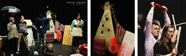 The View From Here was developed over a nine month period using a mixture of smaller projects, online dialogue and workshops to engage performance design students from all over the UK with the Prague Quadrennial 2015 themes of Music, Weather and Politics.